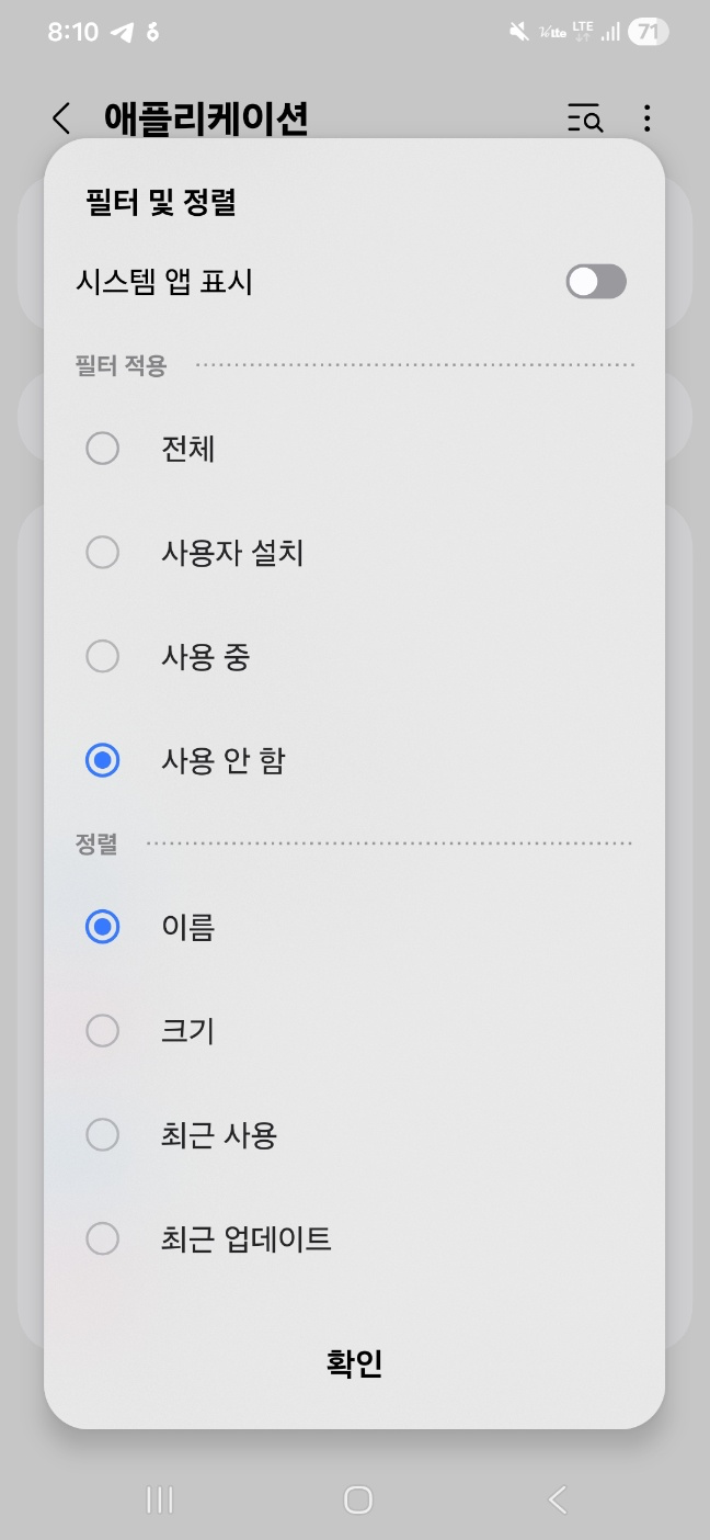 설정 접근 후 우측 위 정렬버튼에서 위와같이 필터링하세요