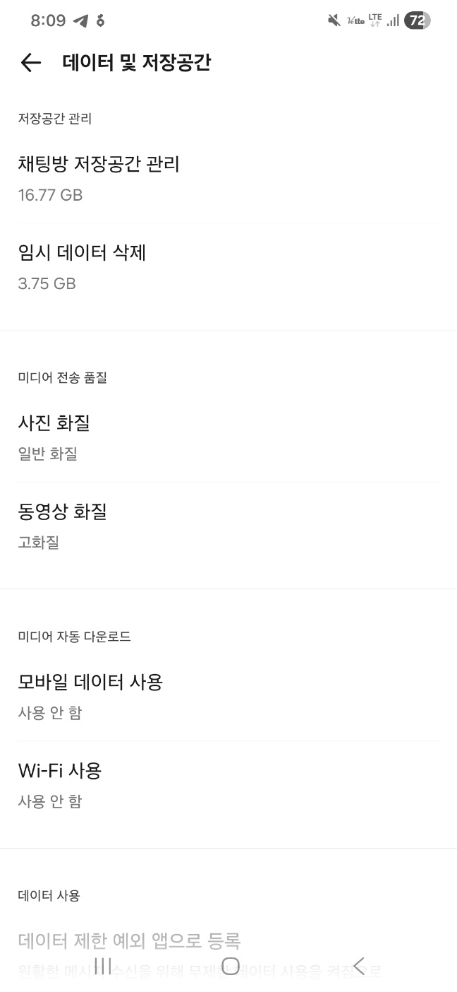 2. [임시 데이터 삭제]를 누르세요. (채팅방의 사진이나 대화가 지워지는 게 아니니 안심하고 누르셔도 됩니다!)
