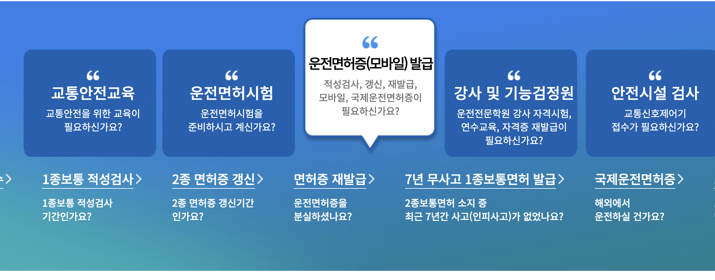 - Tip: 보통 1종 보통은 '적성검사', 2종 보통은 '면허갱신'이라는 용어를 사용합니다.