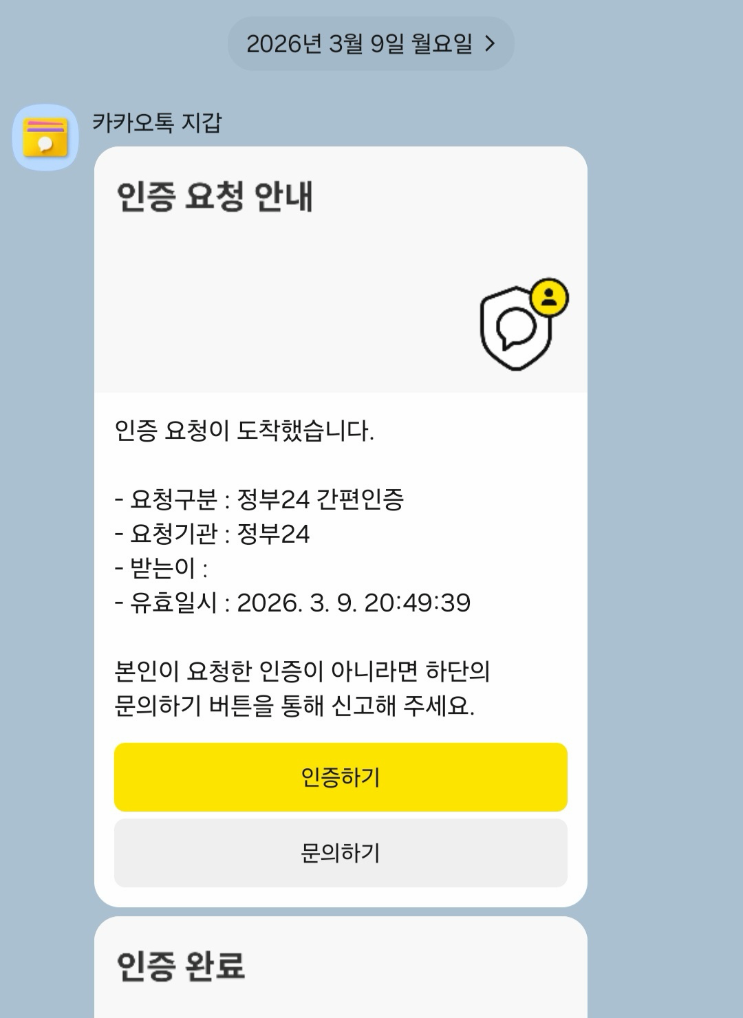 4. 카카오톡 인증 요청 확인하고 승인하기