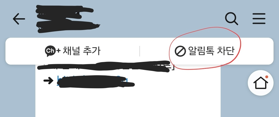📍 전문가의 한 수 광고 채널에 들어간 후 상단에 알림톡 차단을 선택하세요! 만약 이미 채널을 추가해버려 알림톡 차단이 불가능한 상황이라면 아래 2단계를 참고해주세요.