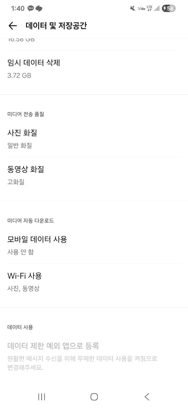 또는 위에 있는 “미디어 자동 다운로드” 슬라이더를 최소로 줄이거나 자동 다운로드 자체를 끄면 더 확실합니다.