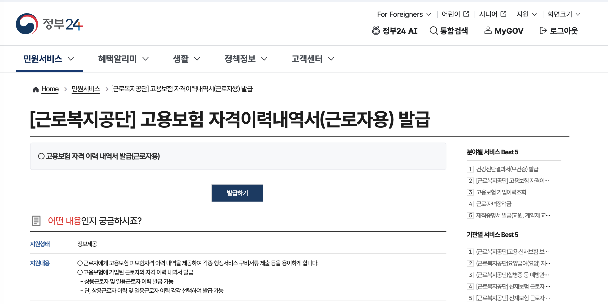 고용보험 피보험자격 이력내역서 발급하는 법 (실업급여/이직용)